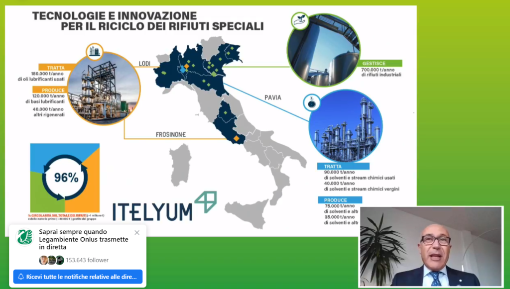 ITELYUM ha preso parte ad EcoForum, il talk nazionale organizzato da Legambiente, La Nuova Ecologia e Kyoto Club, con il patrocinio del Ministero dell’Ambiente, per fare il punto sulla situazione attuale dell’economia circolare nel nostro Paese e ragionare sulle criticità che oggi rallentano la maturazione di questo settore e sulle possibili soluzioni per garantirne la migliore promozione.